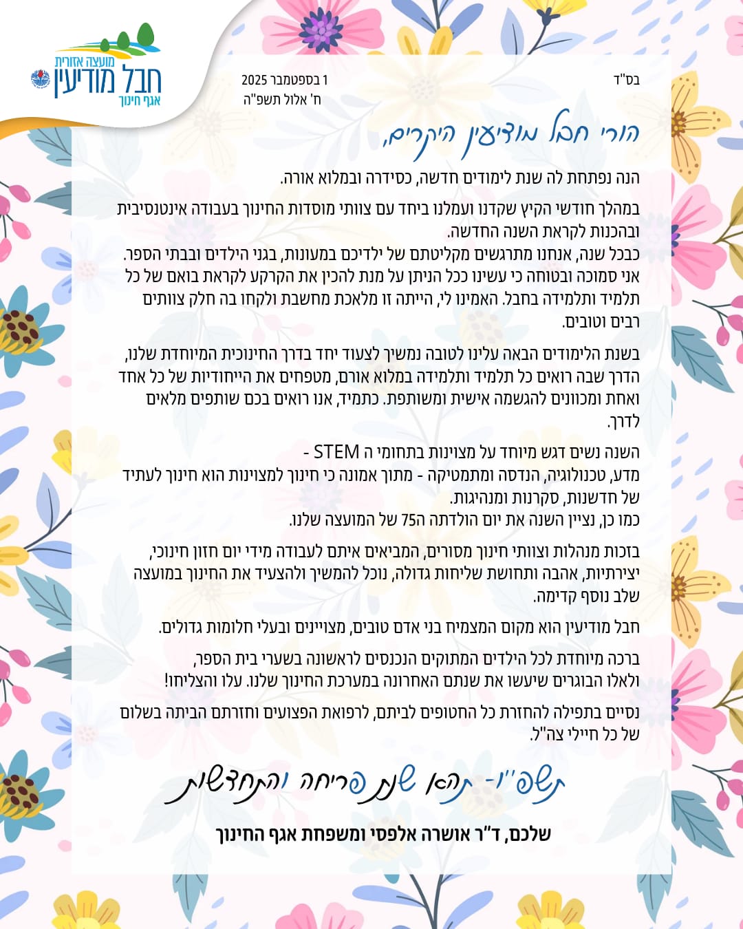 שנת לימודים תשפ"ו מוצלחת לכל ילדי/ות חבל מודיעין